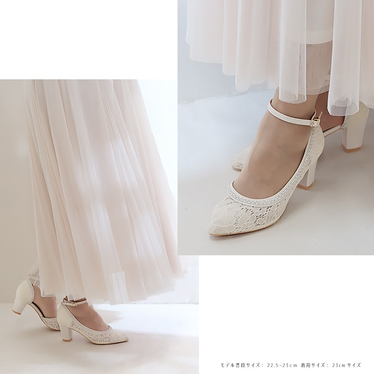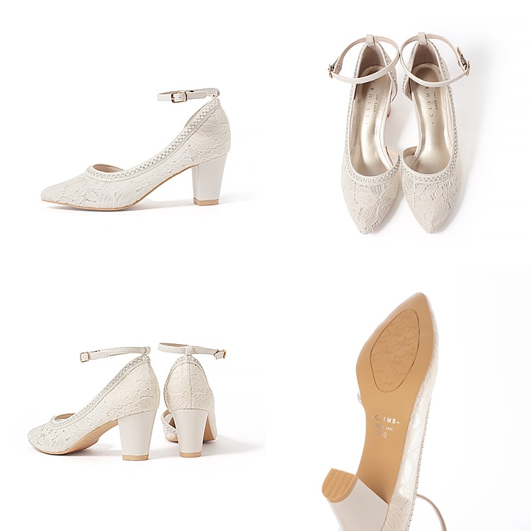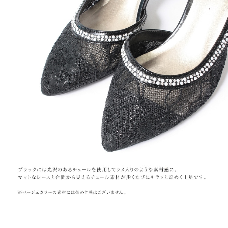 パンプス チュール レース 6cmヒール 太ヒール アーモンドトゥ アンクルストラップ 2025新作 ラインストーン 6247
