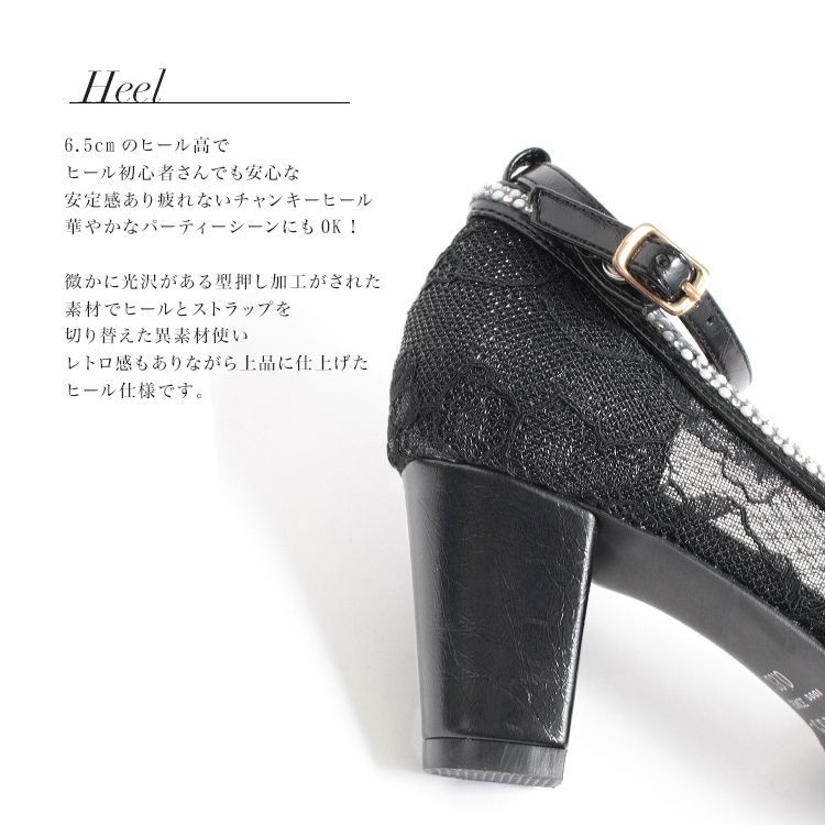 | コメント | 6.5cmの安定感あるチャンキーヒールのストラップパンプス。 柔らかなチュール素材は柔軟に脚に馴染み締め付け感がないのでストレスフリー。 結婚式やセレモニーなどで普段ヒールを履かない方でも安心して履ける履き心地です。 ヒールとストラップは微かな光沢と型押しで上品に仕上げた異素材で切り替えたデザイン。 きれいめスタイルにピッタリなエレガントフェミニンなパンプスです。 |