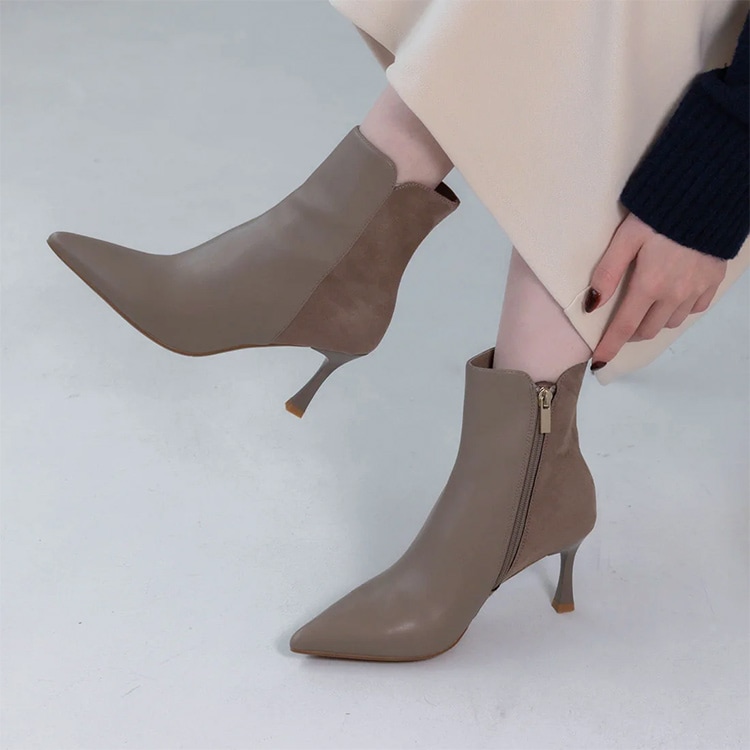 ショートブーツ ポインテッドトゥ 7cmヒール ハイヒール 2025新作 ブラック ベージュ きれいめ ブーツ 23847