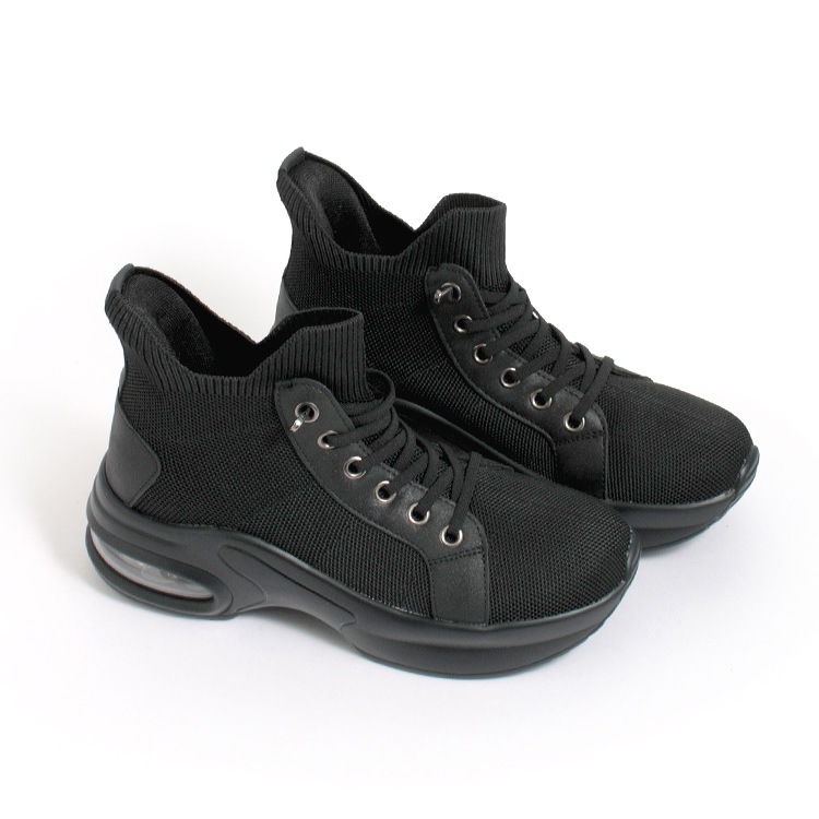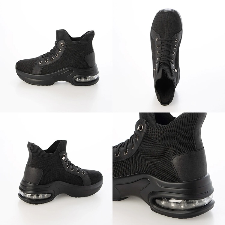 スニーカー 手を使わずに履ける 撥水 スリップインシューズ 6cmヒール 2026新作 厚底 エアーソール レースアップ ゴム紐 ニット 靴 9203
