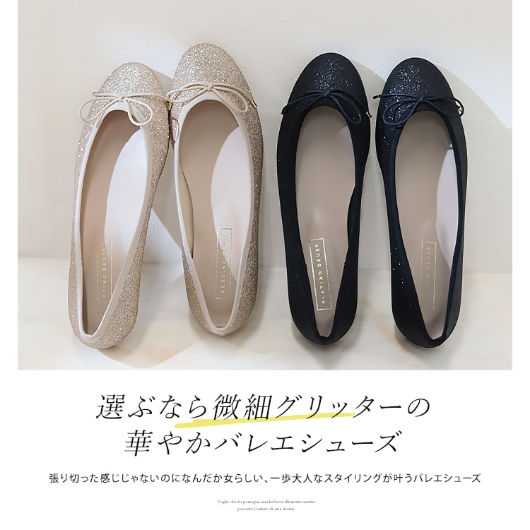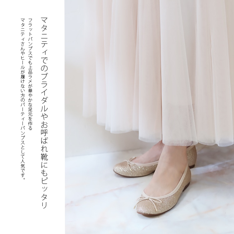 バレエシューズ フラットパンプス 日本製 ラメ リボン ラウンドトゥ 2026新作 ローヒール プラチナドゥ 1702